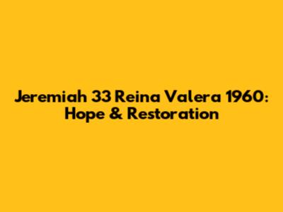 Jeremiah 33 Reina Valera 1960: Hope & Restoration