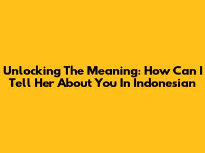 Unlocking The Meaning: 'How Can I Tell Her About You' In Indonesian