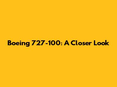 Boeing 727-100: A Closer Look