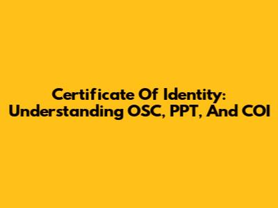 Certificate Of Identity: Understanding OSC, PPT, And COI