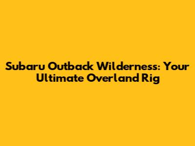 Subaru Outback Wilderness: Your Ultimate Overland Rig