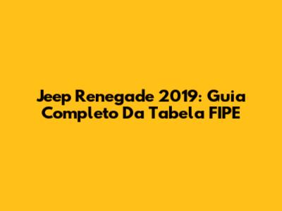 Jeep Renegade 2019: Guia Completo Da Tabela FIPE