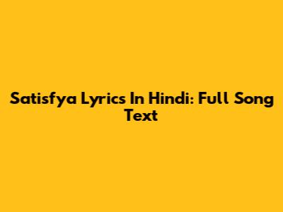 Satisfya Lyrics In Hindi: Full Song Text