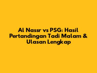 Al Nassr vs PSG menjadi sorotan utama bagi para penggemar sepak bola di seluruh dunia. Pertandingan yang mempertemukan dua kekuatan besar ini selalu menjanjikan aksi yang seru dan penuh drama. Bagi kalian yang ketinggalan keseruannya, jangan khawatir! Artikel ini akan mengulas secara lengkap hasil pertandingan Al Nassr vs PSG tadi malam, termasuk jalannya pertandingan, pemain kunci, dan analisis mendalam.