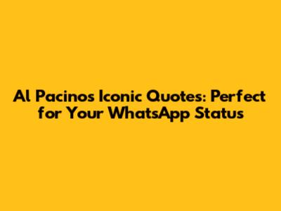 Hey guys! Are you looking to spice up your WhatsApp status game? Do you want something that's not just another generic quote, but something with a little oomph? Well, you've come to the right place! We're diving deep into the treasure trove of Al Pacino quotes, perfect for your next WhatsApp status. Al Pacino, the legend himself, has gifted us with so many memorable lines throughout his illustrious career. From the gripping intensity of Michael Corleone to the flamboyant energy of Tony Montana, his words carry weight and instantly grab your attention. We'll explore some of the most powerful, thought-provoking, and downright cool quotes that will make your status stand out from the crowd. Get ready to impress your friends, family, and maybe even a few strangers with your impeccable taste in cinema and quotes. Let's get started and transform your WhatsApp status into a work of art with the words of one of the greatest actors of all time! Remember, choosing the right quote can say a lot about you, so let's make sure it's saying something awesome.