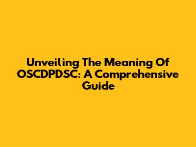 Unveiling The Meaning Of OSCDPDSC: A Comprehensive Guide