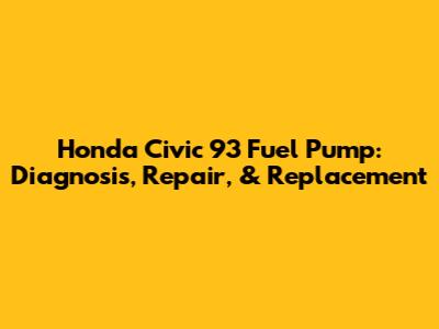 Honda Civic '93 Fuel Pump: Diagnosis, Repair, & Replacement