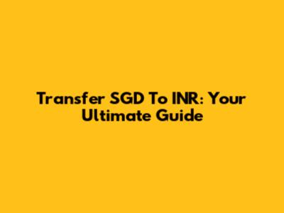 Transfer SGD To INR: Your Ultimate Guide