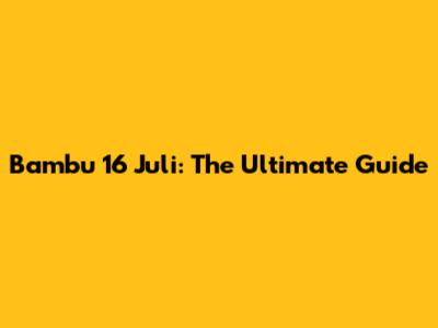 Bambu 16 Juli: The Ultimate Guide