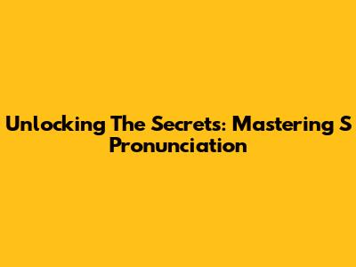 Unlocking The Secrets: Mastering 'S' Pronunciation