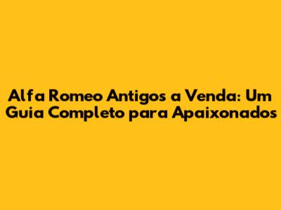 Onde Encontrar Alfa Romeo Antigos à Venda