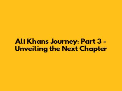 Ali Khan's Journey: Part 3 - Unveiling The Next Chapter