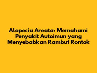 Alopecia areata adalah kondisi autoimun yang menyebabkan kerontokan rambut. Sistem kekebalan tubuh, yang seharusnya melindungi tubuh dari serangan penyakit, secara keliru menyerang folikel rambut. Folikel rambut adalah kantung tempat rambut tumbuh. Serangan ini menyebabkan peradangan yang membuat rambut berhenti tumbuh dan rontok. Biasanya, kerontokan rambut terjadi dalam bentuk bercak-bercak bulat atau oval di kulit kepala. Namun, alopecia areata bisa lebih parah, menyebabkan kerontokan rambut di seluruh kulit kepala (alopecia totalis) atau bahkan di seluruh tubuh, termasuk alis, bulu mata, dan rambut di bagian tubuh lainnya (alopecia universalis).