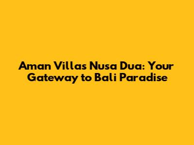 Unveiling the Allure of Aman Villas Nusa Dua
