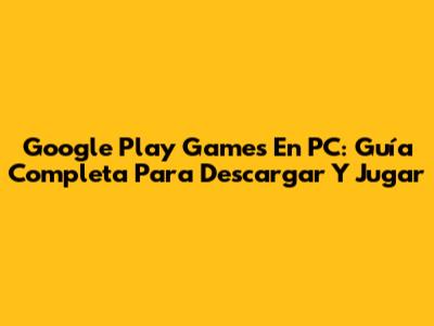 Google Play Games En PC: Guía Completa Para Descargar Y Jugar