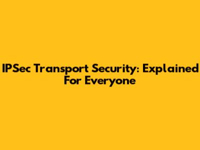 IPSec Transport Security: Explained For Everyone