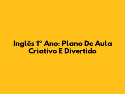 Inglês 1º Ano: Plano De Aula Criativo E Divertido