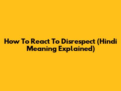 How To React To Disrespect (Hindi Meaning Explained)