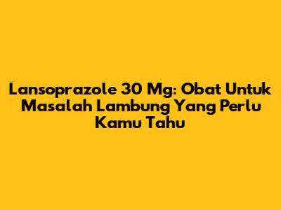 Lansoprazole 30 Mg: Obat Untuk Masalah Lambung Yang Perlu Kamu Tahu