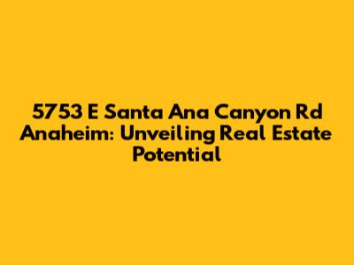 Hey everyone! Let's dive deep into a specific property today: 5753 E Santa Ana Canyon Rd in Anaheim. We're going to break down everything you need to know, from the neighborhood vibes to the nitty-gritty of the property itself. Whether you're a seasoned investor, a first-time homebuyer, or just plain curious, this article is for you. We'll explore the area's charm, the types of homes you might find, and what makes this address a noteworthy spot in the Anaheim real estate landscape. Get ready for a comprehensive tour! We will cover everything in detail, so you have a solid understanding of the location and what it offers. Let's get started, shall we?