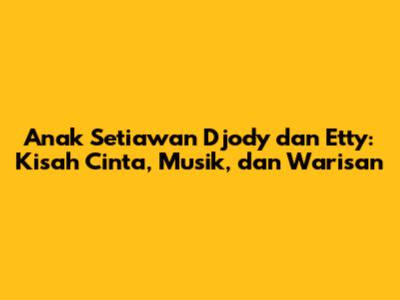 Setiawan Djody dan Etty adalah pasangan yang luar biasa. Melalui musik, cinta, dan dedikasi, mereka telah menciptakan warisan yang akan terus dikenang. Kisah cinta mereka, dari awal pertemuan hingga pernikahan, adalah inspirasi bagi banyak orang. Keluarga yang mereka bangun menjadi tempat mereka berbagi kebahagiaan dan kasih sayang. Anak-anak mereka adalah bukti dari cinta mereka, dan mereka akan membawa warisan dari orang tua mereka.