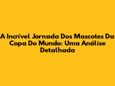 A Incrível Jornada Dos Mascotes Da Copa Do Mundo: Uma Análise Detalhada