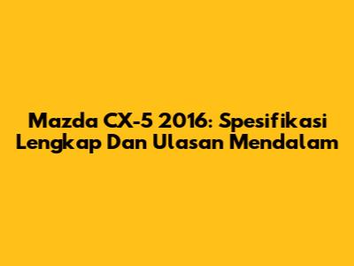 Mazda CX-5 2016: Spesifikasi Lengkap Dan Ulasan Mendalam