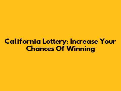 California Lottery: Increase Your Chances Of Winning