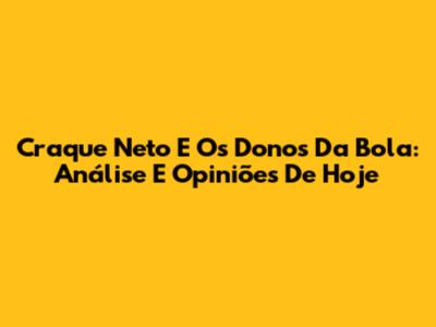 Craque Neto E Os Donos Da Bola: Análise E Opiniões De Hoje