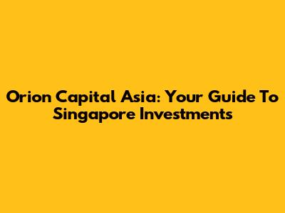 Orion Capital Asia: Your Guide To Singapore Investments