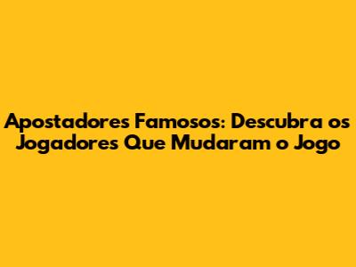 Apostadores Famosos: Descubra os Jogadores Que Mudaram o Jogo