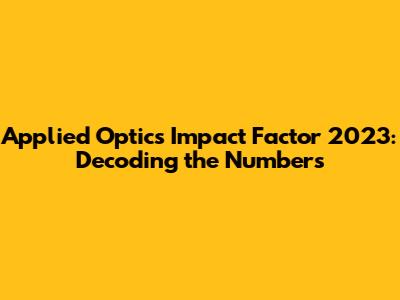 Hey everyone! Let's dive into something super important for those of us in the optics world: the Applied Optics Impact Factor for 2023. I know, I know, it sounds a bit… technical. But trust me, understanding this stuff is key to navigating the academic landscape, knowing where to publish your groundbreaking research, and generally staying in the know. So, grab your coffee (or tea!), and let's break it down in a way that's easy to understand. We will try to address some questions and some frequently asked topics that are interesting for you guys.