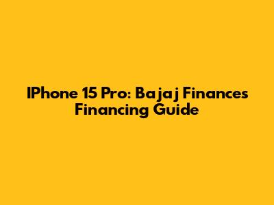 IPhone 15 Pro: Bajaj Finance's Financing Guide