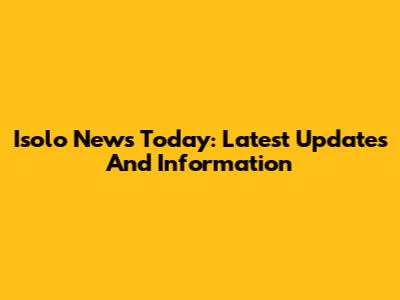 Isolo News Today: Latest Updates And Information