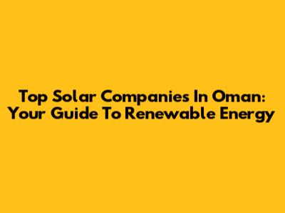 Top Solar Companies In Oman: Your Guide To Renewable Energy