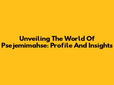 Unveiling The World Of Psejemimahse: Profile And Insights