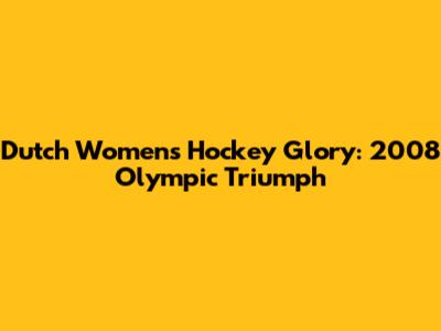 Dutch Women's Hockey Glory: 2008 Olympic Triumph
