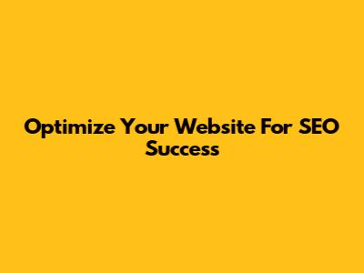 Optimize Your Website For SEO Success