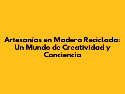 Técnicas y Procesos en la Creación de Artesanías en Madera Reciclada: Del Desecho al Arte