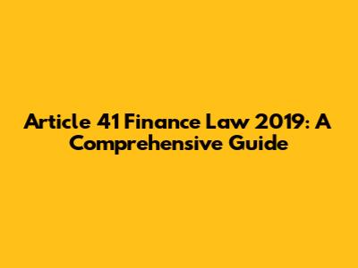 What is Article 41 of the 2019 Finance Law?