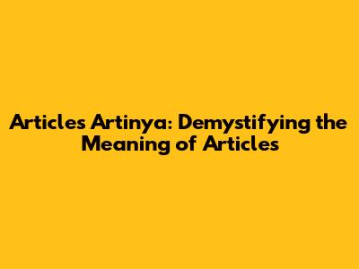 What Exactly Does "Articles Artinya" Mean?