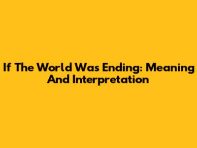 If The World Was Ending: Meaning And Interpretation