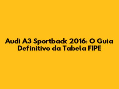 Entendendo a Tabela FIPE e o Valor do Audi A3 Sportback 2016