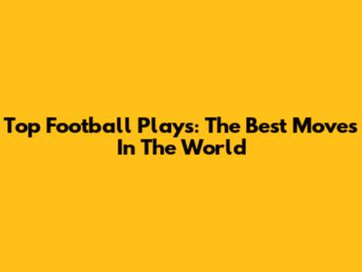 Top Football Plays: The Best Moves In The World