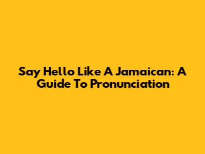 Say Hello Like A Jamaican: A Guide To Pronunciation
