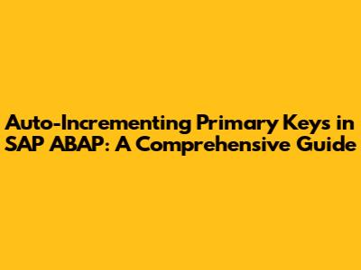 Auto-Incrementing Primary Keys In SAP ABAP: A Comprehensive Guide