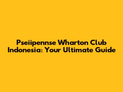 Pseiipennse Wharton Club Indonesia: Your Ultimate Guide