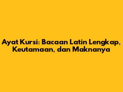 Ayat Kursi adalah ayat ke-255 dari Surah Al-Baqarah dalam Al-Qur'an. Ayat ini dikenal karena keagungan dan keutamaannya yang luar biasa. Banyak umat Muslim yang berusaha untuk membaca dan menghafal ayat ini karena diyakini memiliki banyak manfaat dan keberkahan. Buat kalian yang masih kesulitan membaca huruf Arab, jangan khawatir! Berikut ini adalah bacaan Ayat Kursi dalam huruf latin yang lengkap: