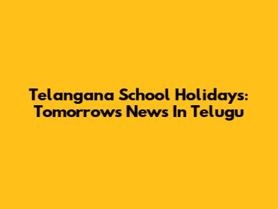 Telangana School Holidays: Tomorrow's News In Telugu