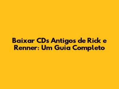Onde Encontrar e Baixar CDs Antigos de Rick e Renner